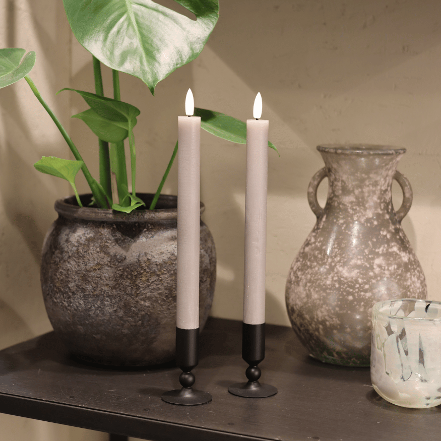 Skapa en mysig atmosfär med dessa eleganta LED kronljus i klassiskt grå. De naturtrogna 3D-lågor flackar mjukt och ger ett varmt, stämningsfullt ljus – helt utan sot, rök eller brandrisk.
