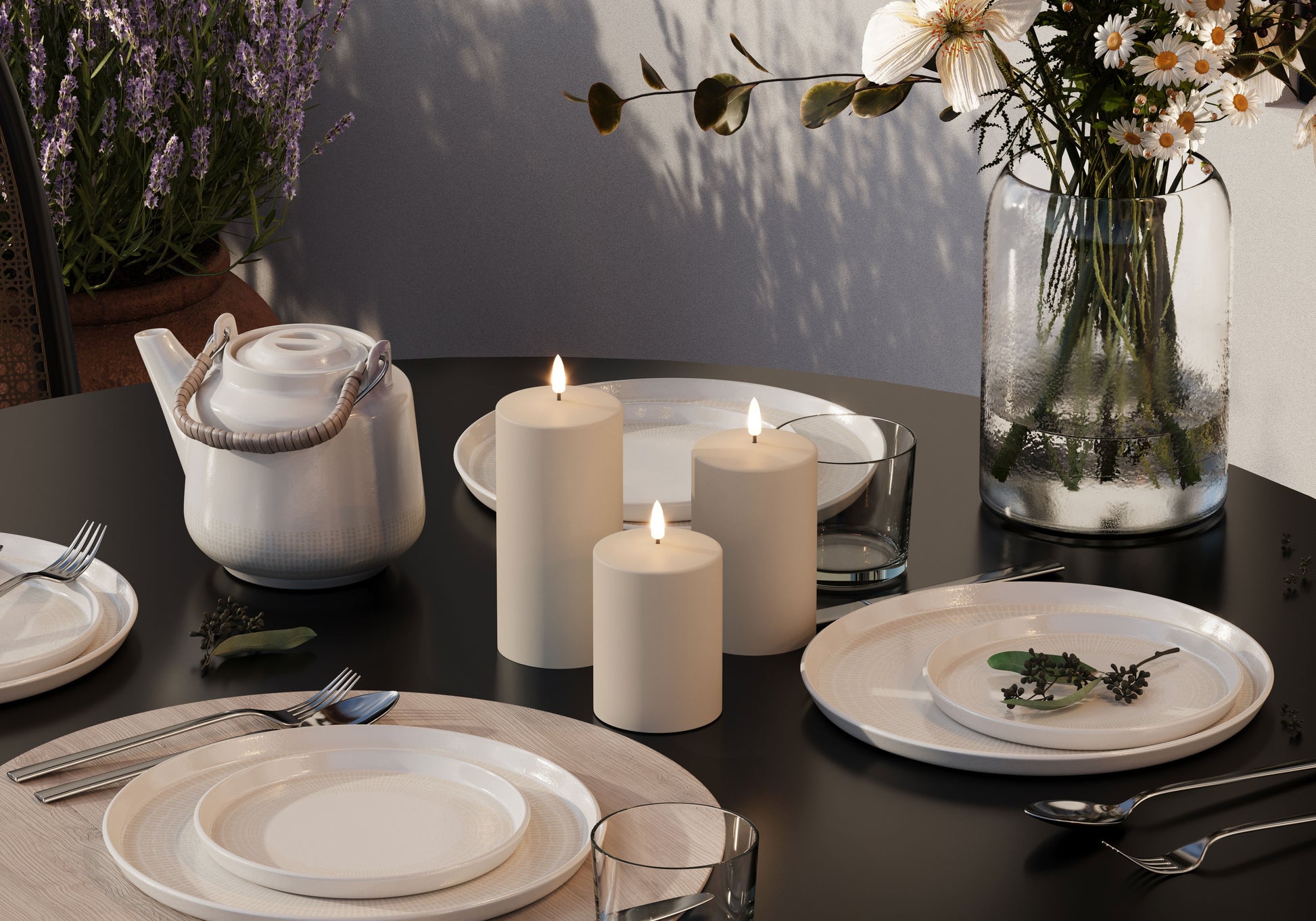 Detta set kombinerar funktion och estetik – helt utan öppen låga, stearinspill eller behov av laddning. Perfekt för att skapa stämning på uteplatsen, vid entrén eller i uterummet.