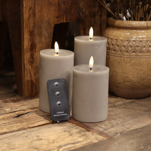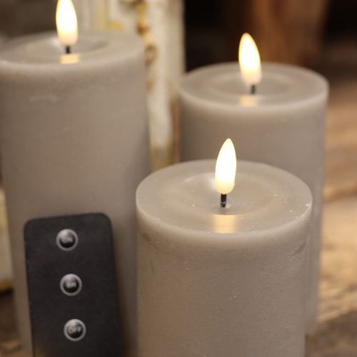 Grå LED Blockljus Set med 3 Storlekar och Fjärrkontroll