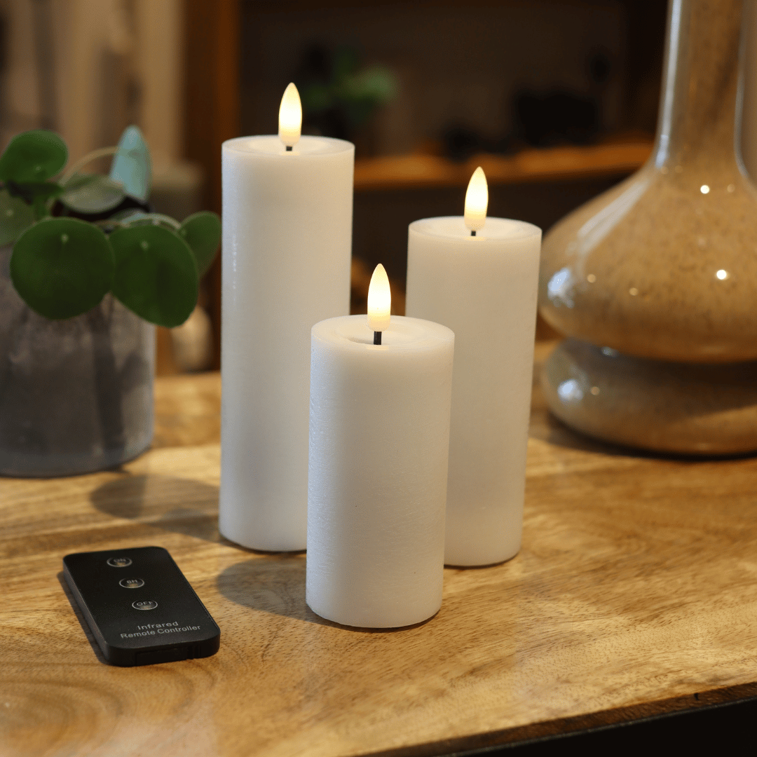 Vitt LED-blockljusset med 3 blockljus och fjärrkontroll