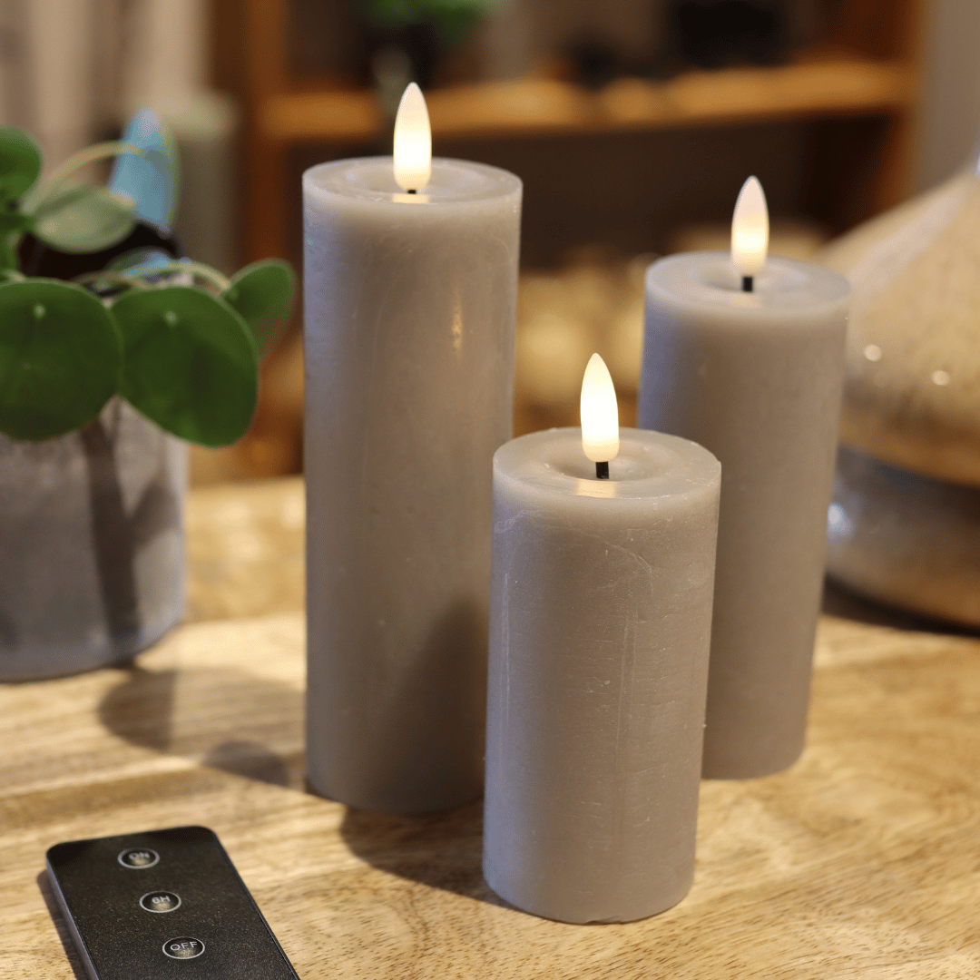Sandfärgat LED-blockljusset med 3 blockljus och fjärrkontroll