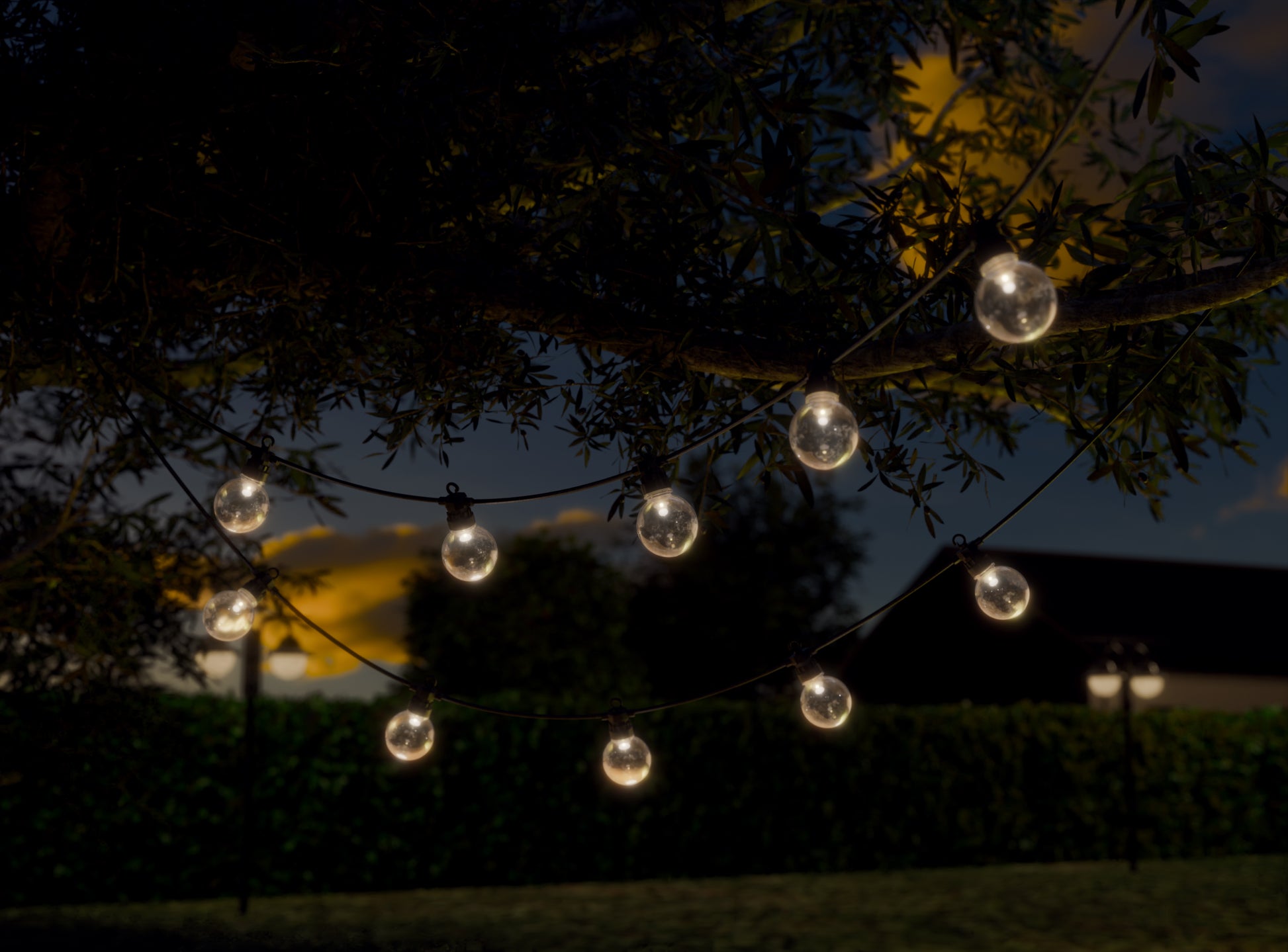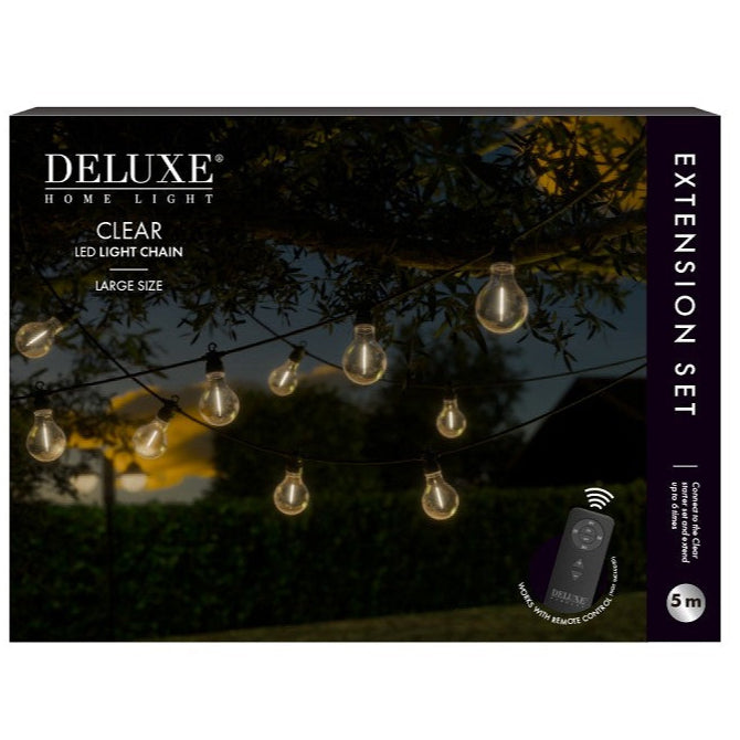 En vacker ljusslinga för både inomhus- och utomhusbruk. Detta förlängningsset ger 5 meter extra längd till slingan. Observera att setet inte kan användas ensamt – ett startpaket krävs först.