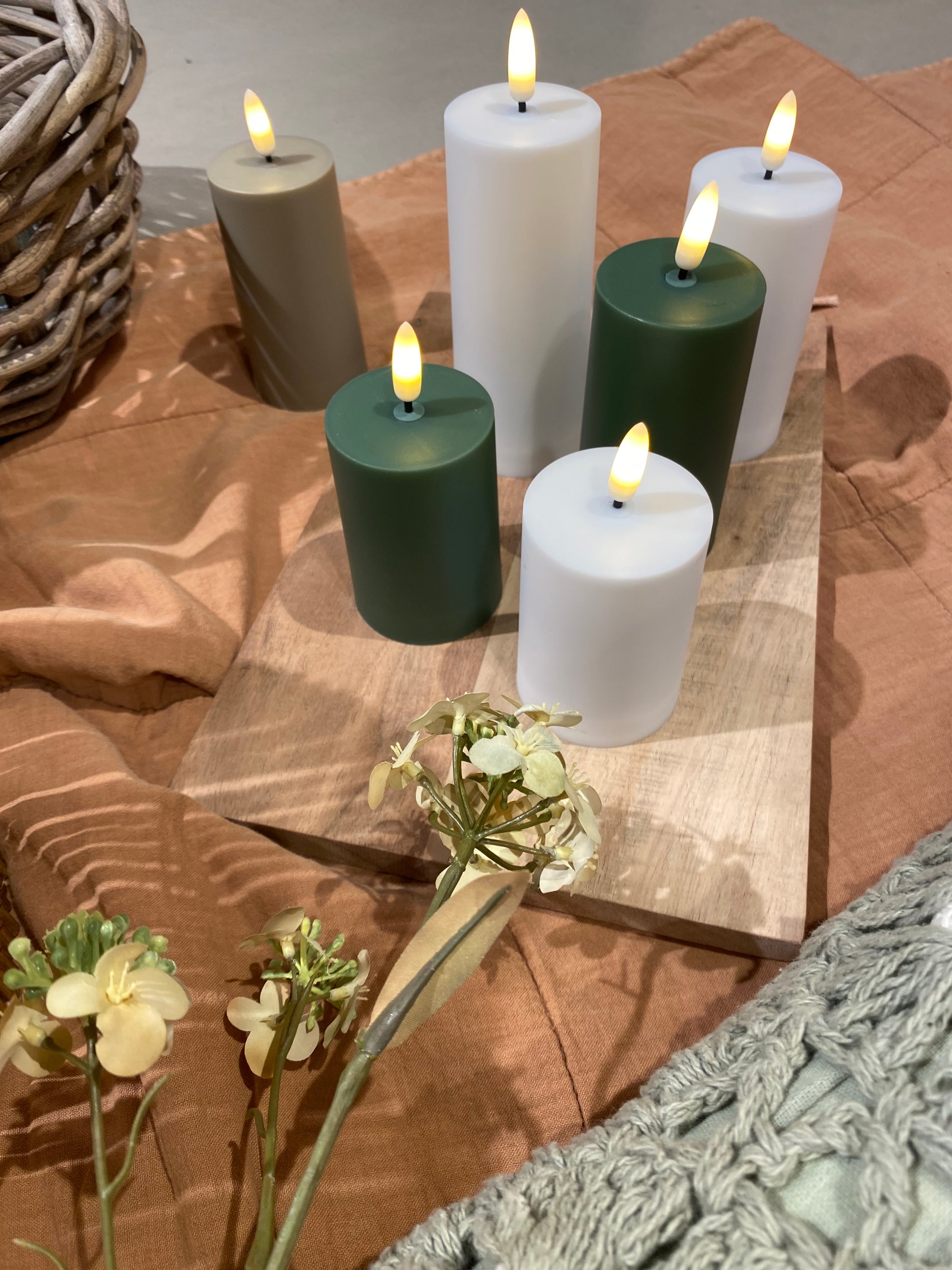 Nordic Flame LED-ljus 3-pack Blockljus inomhus Färg: SalviagrönPaketet inkluderar:1 st: Ø7,5 x 10 cm LED-blockljus1...